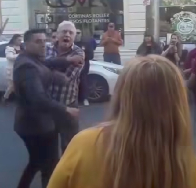 Foto: Despues de golpearla, Gil le grita sacado, enardecido, desde el medio de la calle a la mujer, victima de su cobarde actitud.