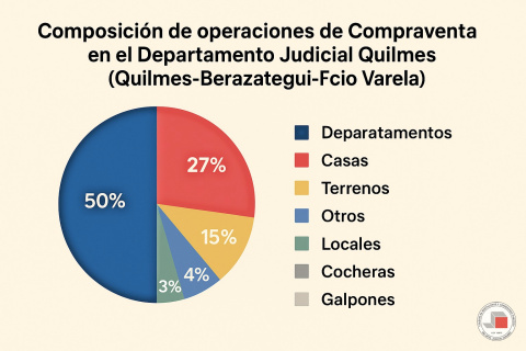 Otro dato relevante del informe elaborado por la UNNOBA y los colegios profesionales inmobiliarios confirma que “la composición de la compraventa de inmuebles en nuestra región está signada casi exclusivamente por las viviendas. Según las estadísticas, la compraventa durante el primer semestre estuvo liderada por los departamentos (50%), seguidos por las casas (27%) y los terrenos (15%). El resto de las operaciones se distribuye entre locales, cocheras, galpones y otros. Los datos son reveladores: el mercado de venta y alquiler en los distritos de Quilmes, Berazategui y Florencio Varela, durante el primer semestre de 2025, estuvo vinculado casi exclusivamente a la adquisición de inmuebles destinados a vivienda”, concluyó Lavalle.