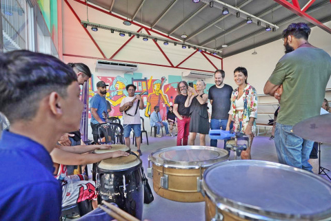 Participaron de esta actividad la subsecretaria de Gestión Cultural, Evangelina Ramírez; el director de Políticas Socioculturales, Leandro Cepeda, y su par de Talleres Barriales, Marcos Traina, y el músico quilmeño y director de la Biblioteca y Centro Cultural IAPI, Agustín Ronconi, entre otros.